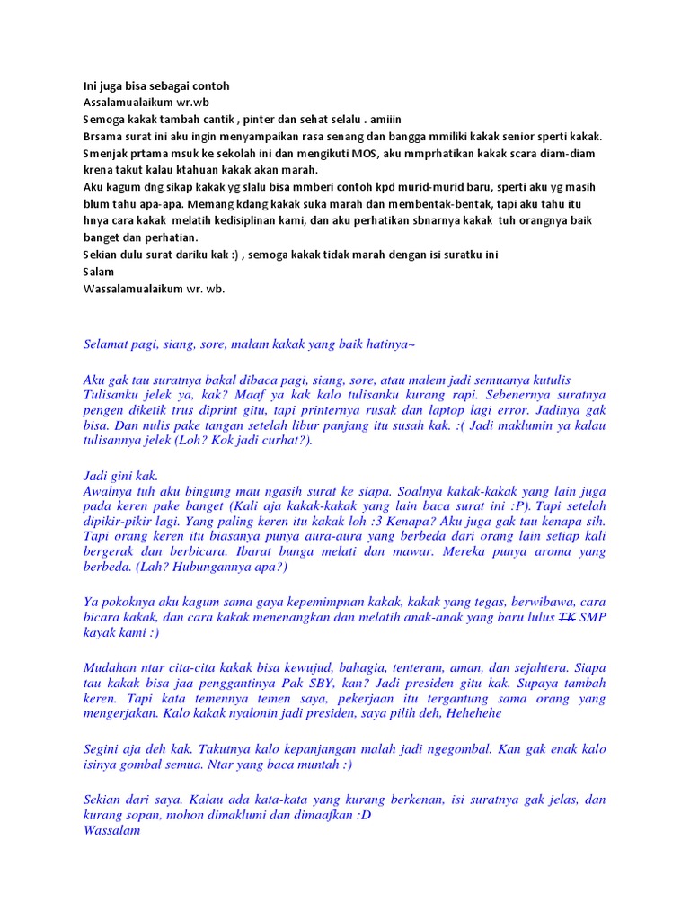 Assalamualaikum Warahmatullahi Wabarakatuh Selamat kami ucapkan atas terpilihnya bapak sebagai kepala sekolah yang baru. Andi kamu rajin sekali suka membantu ibumu memasak kangkung. Singkat jelas padat dan tidak bertele-tele.
